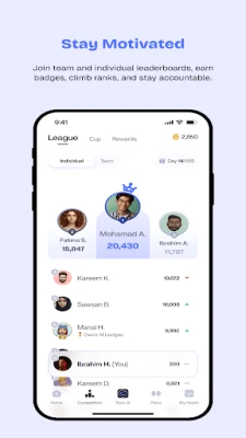 Earn Points for Healthy Habits: Every healthy action counts! From walking steps to tracking calories, every activity helps you earn points. These points power your progress on the leaderboard.
