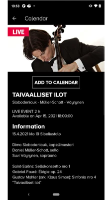 In addition to traditional online concerts, the Lahti Symphony Orchestra offers the free SL ClassicLive app, with which you can enjoy our concerts in the Sibelius Hall on your mobile device wherever and whenever you want! You can watch and listen to live concert broadcasts as well as numerous concert recordings.